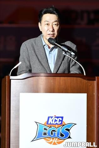 22일 전주실내체육관에서 열린 2022-2023 SKT 에이닷 프로농구 전주 KCC와 울산 현대모비스의 KCC 홈개막전, KCC 전창진 감독이 코트로 들어서고 있다. [점프볼=전주/유용우 기자]