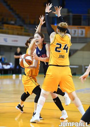 [점프볼=청주/문복주 기자] 16일부터 21일까지 청주체육관에서 '2020 우리은행 박신자컵 서머리그' KB스타즈와 대구시청의 경기, KB스타즈 심성영이 여유있는 드리블로 공격을 나가고 있다.