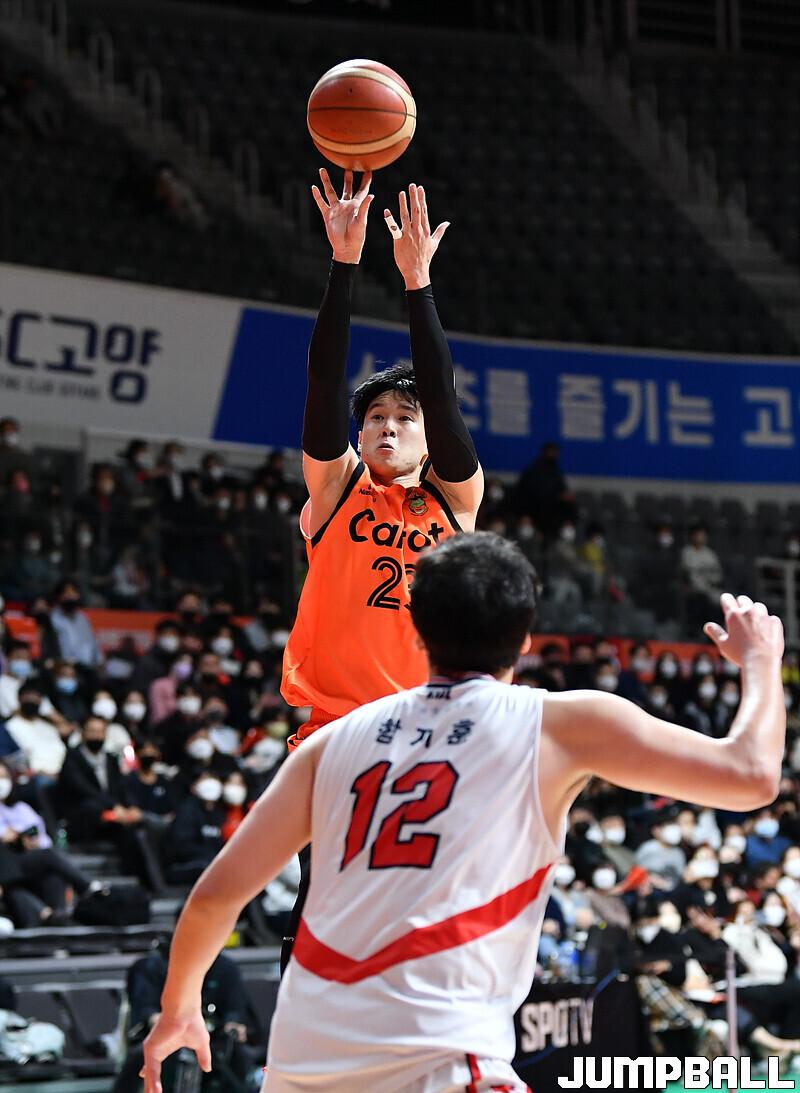 고양 캐롯은 6일 고양체육관에서 벌어진 2022-2023 SKT 에이닷 프로농구 1라운드 홈경기에서 울산 현대모비스에 112-88로 이겼다. 캐롯은 2연패에서 탈출, 5승 3패로 3위에 올랐다. 최현민(19점 3점슛 6개 포함 2리바운드)이 뜨거운 손끝을 자랑했고, 전성현(22점 3점슛 4개 포함 4리바운드 6어시스트 2스틸)과 데이비드 사이먼(21점 8리바운드 2어시스트), 조한진(12점 3점슛 4개 포함2리바운드)도 팀 승리를 견인했다. 캐롯은 올 시즌 최다인 17개의 3점슛을 성공시켰다. 종전 기록은 총 4차례 나온 15개였다.