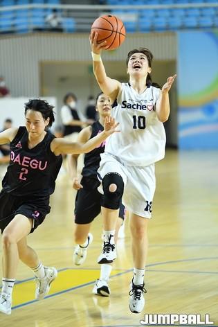 [점프볼=김천/유용우 기자] 10일 김천실내체육관에서 열린 2021 전국실업농구연맹전 사천시청과 대구시청의 경기, 사천시청 이수연과 대구시청 박은서가 박스아웃 경쟁을 하고 있다.