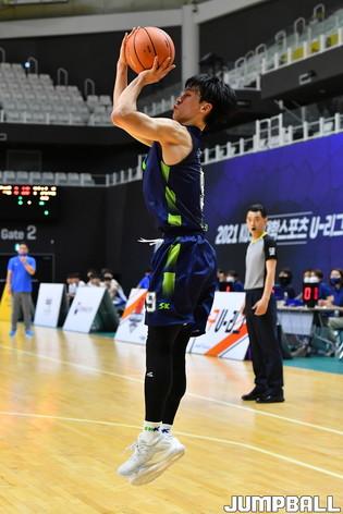 [점프볼=수원/홍기웅 기자] 14일 수원 서수원칠보체육관에서 열린 '2021 KUSF 대학농구 U-리그 3차대회' 연세대와 중앙대의 4강 경기. 중앙대 박인웅이 레이업을 올려넣고 있다.