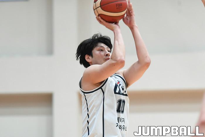 26일 경기도 이천에 위치한 LG 챔피언스파크에서 열린 2021-2022 KBL D리그 대구 한국가스공사와 전주 KCC의 경기, KCC 송창용이 3점슛을 시도하고 있다.