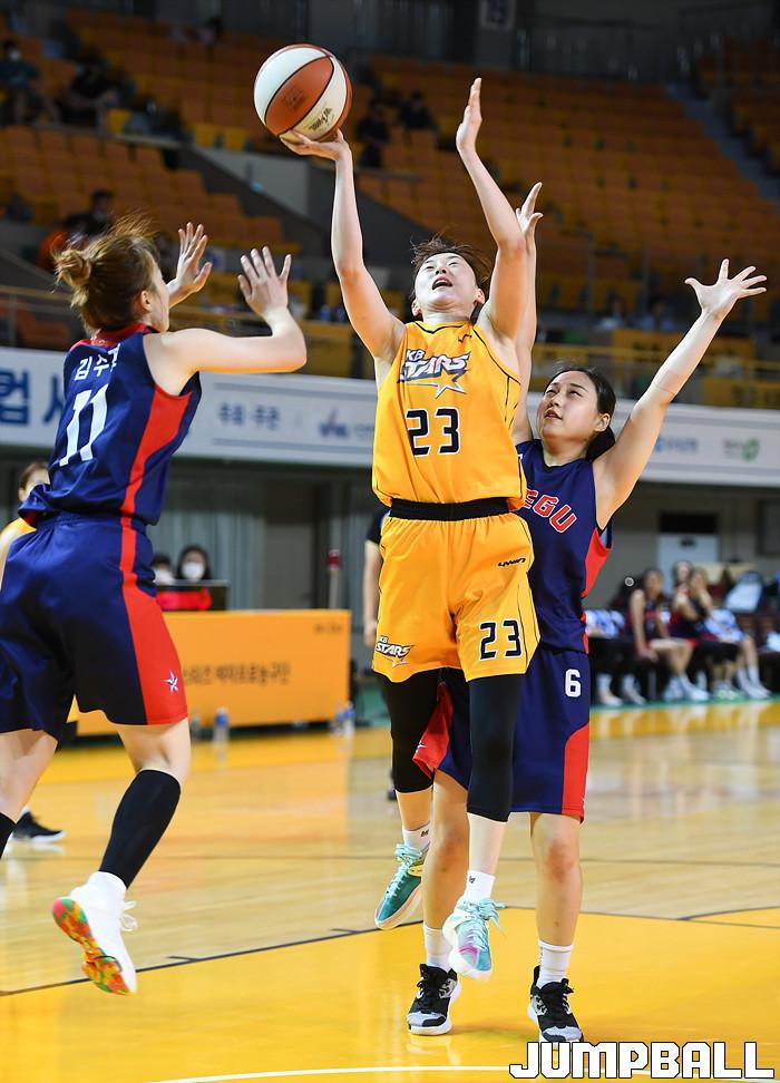 [점프볼=청주/문복주 기자] 16일부터 21일까지 청주체육관에서 '2020 우리은행 박신자컵 서머리그' KB스타즈와 대구시청의 경기, KB스타즈 선가희가 골밑에서 상대수비를 제치고 득점을 하고 있다.