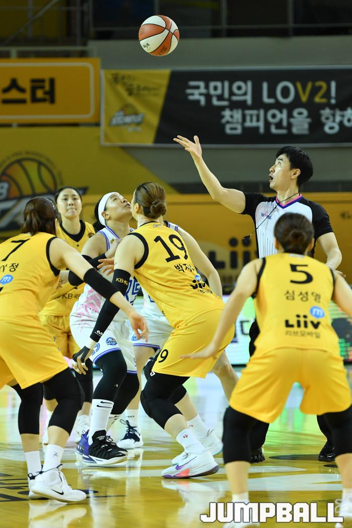 [JB포토] KB-삼성생명 WKBL 챔프3차전 '점프볼'