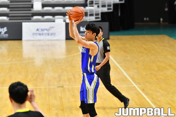[점프볼=수원/홍기웅 기자] 14일 수원 서수원칠보체육관에서 열린 '2021 KUSF 대학농구 U-리그 3차대회' 연세대와 중앙대의 4강 경기. 연세대 신동혁이 3점슛을 던지고 있다.