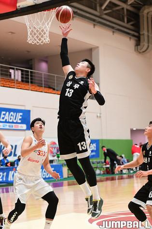 [점프볼=이천/문복주 기자] 31일 이천 LG챔피언스파크 실내농구장에서 열린 2020-2021 KBL D리그 플레이오프 준결승 SK와 삼성의 경기, SK 송창무가 속공 찬스에서 원핸드 덩크를 시도하고 있다.