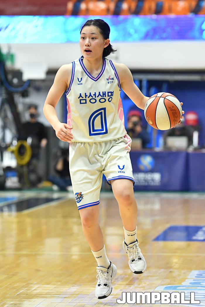 [점프볼=인천/유용우 기자] 17일 인천 도원체육관에서 열린 'KB국민은행 Liiv M 2020~2021 여자프로농구' 신한은행과 삼성생명의 경기, 삼성생명 조수아가 경기를 조율하고 있다.