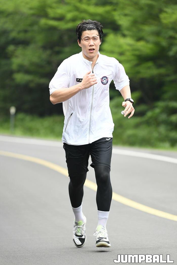 대구 한국가스공사는 12일부터 10박 11일 동안 제주도에서 전지훈련을 실시한다. 전지훈련 2일차인 13일, 한국가스공사는 제주도 1100고지까지 거리 11KM의 러닝훈련을 실시했다. 한국가스공사 박봉진이 런닝훈련을 실시하고 있다. 제주/유용우 기자
