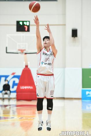 17일 이천에 위치한 LG 챔피언스파크에서 열린 2021-2022 KBL D리그 울산 현대모비스와 대구 한국가스공사의 경기, 현대모비스 정종현이 골밑에서 슛을 시도하고 있다.