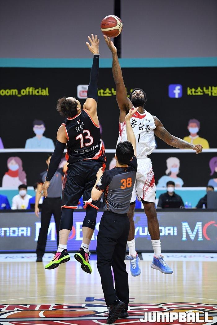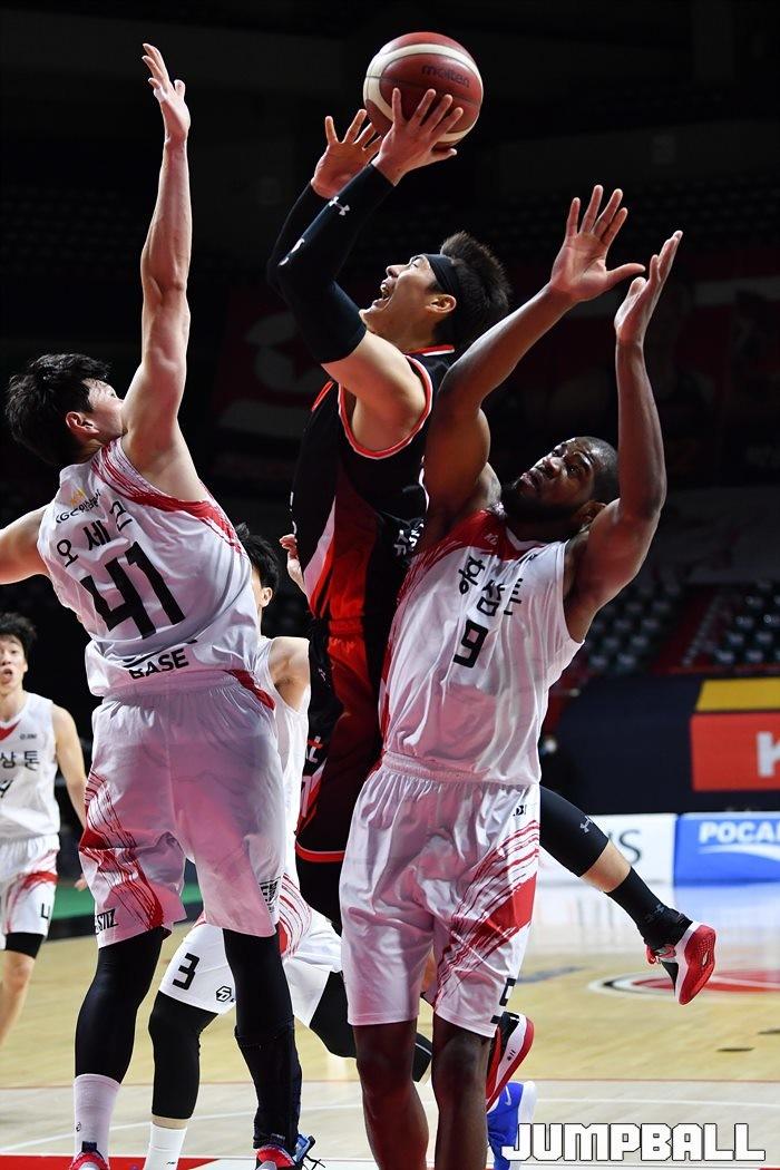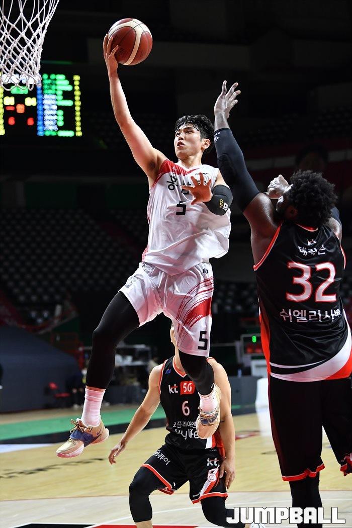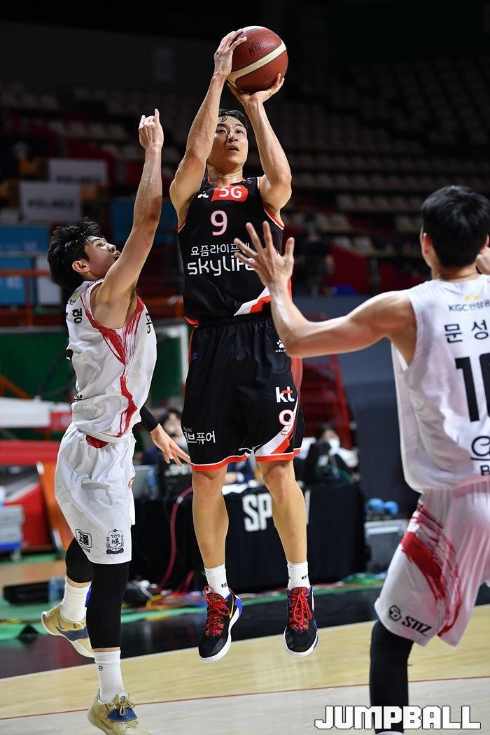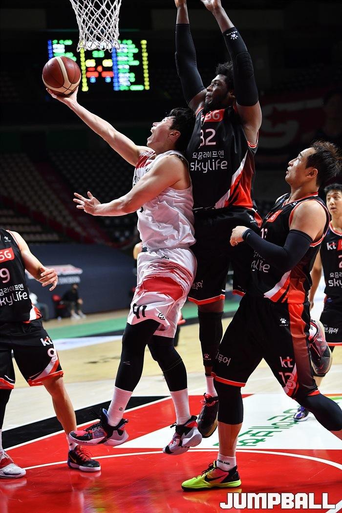 [점프볼=부산/유용우 기자] 22일 부산 사직실내체육관에서 열린 '2020-2021 현대모비스 프로농구' 부산 kt와 안양 KGC인삼공사의 경기, KGC가 2차 연장전 끝에 93-89로 승리하였다.