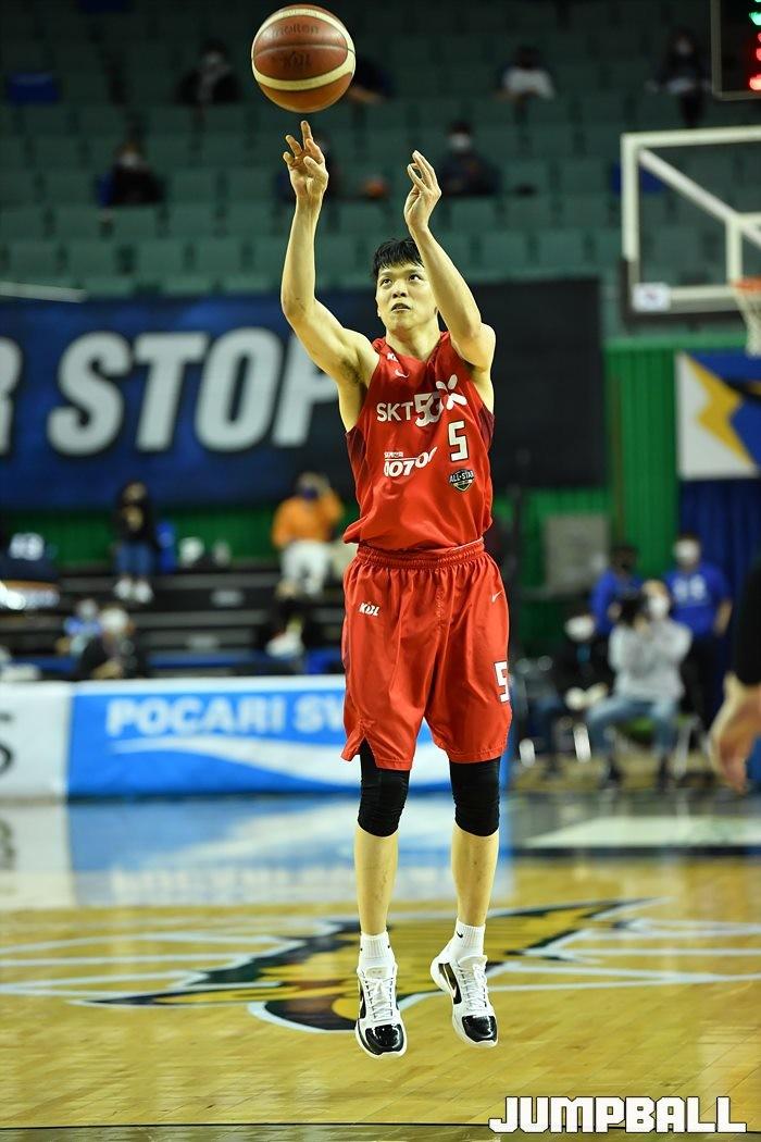 [점프볼=잠실/유용우 기자] 21일 잠실실내체육관에서 열린 2020-2021 현대모비스 프로농구 서울 삼성과 서울 SK의 경기, SK 김선형이 3점슛을 던지고 있다.