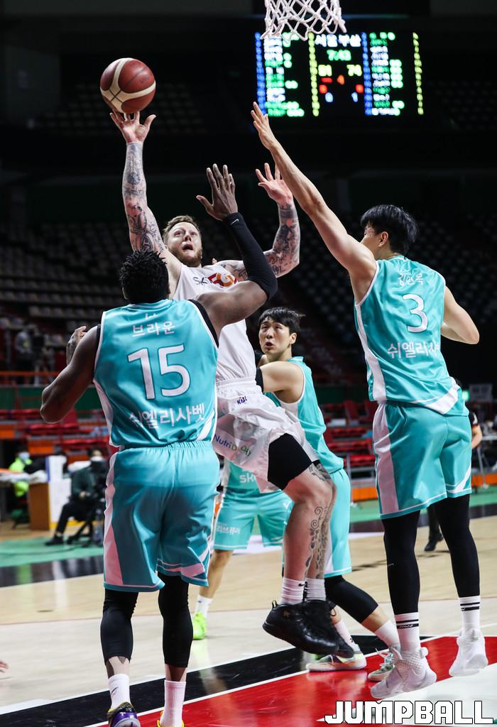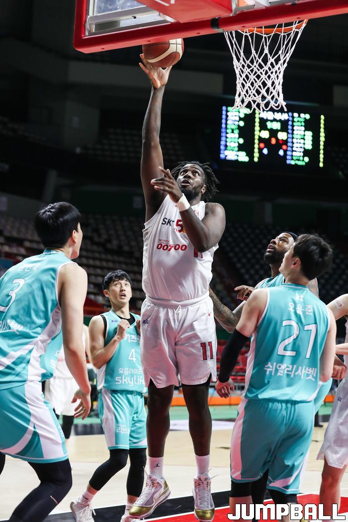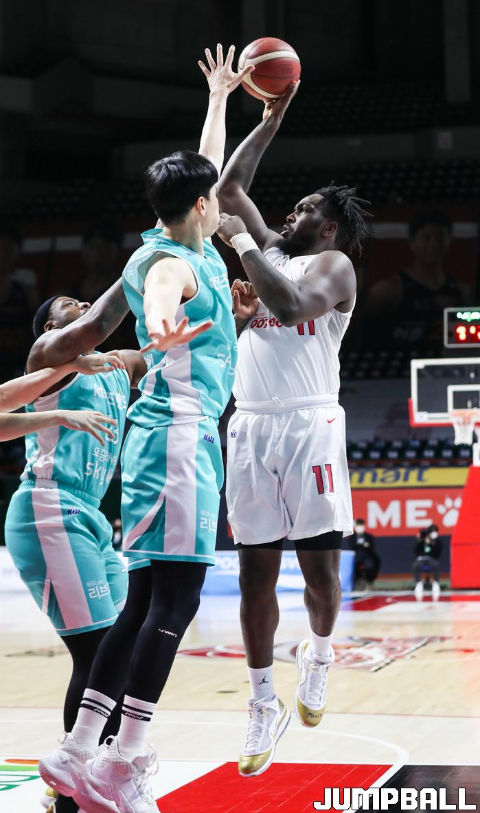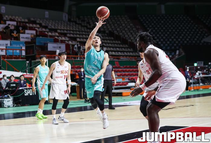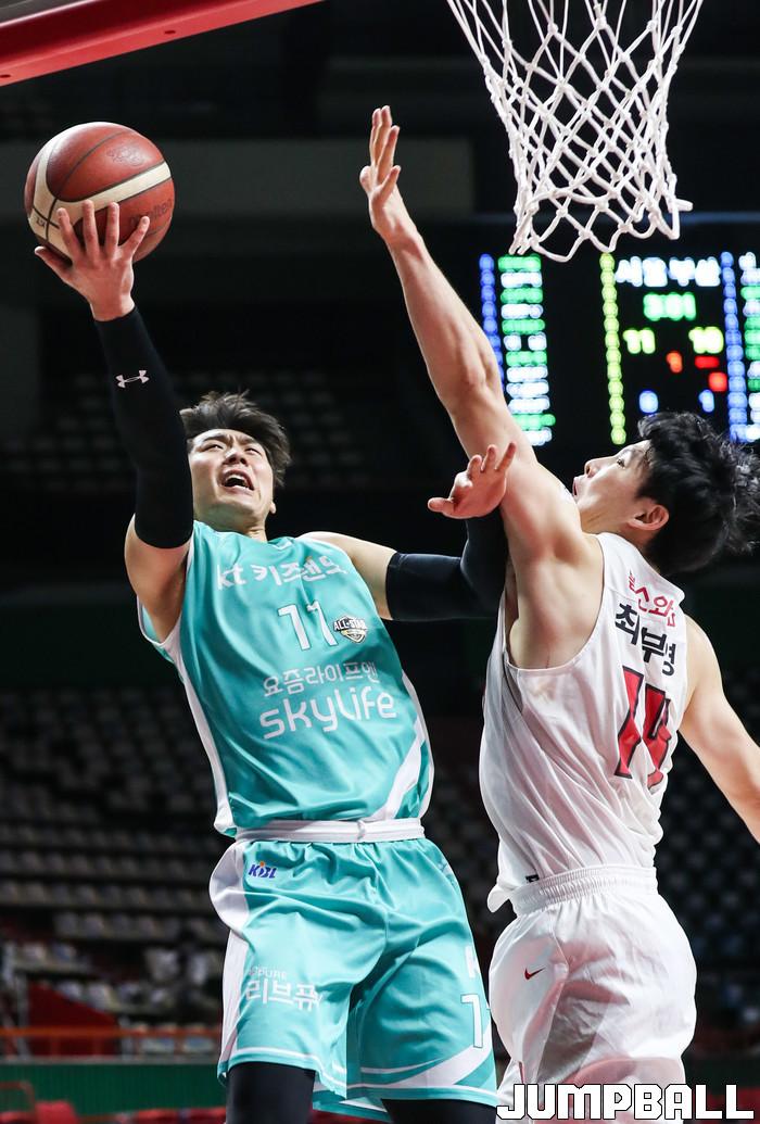 [점프볼=윤민호 기자]부산 KT는 7일 부산사직체육관에서 열린 2020~2021 현대모비스 프로농구 서울 SK와 맞대결에서 89-65로 승리하며 2연패에서 벗어났다.