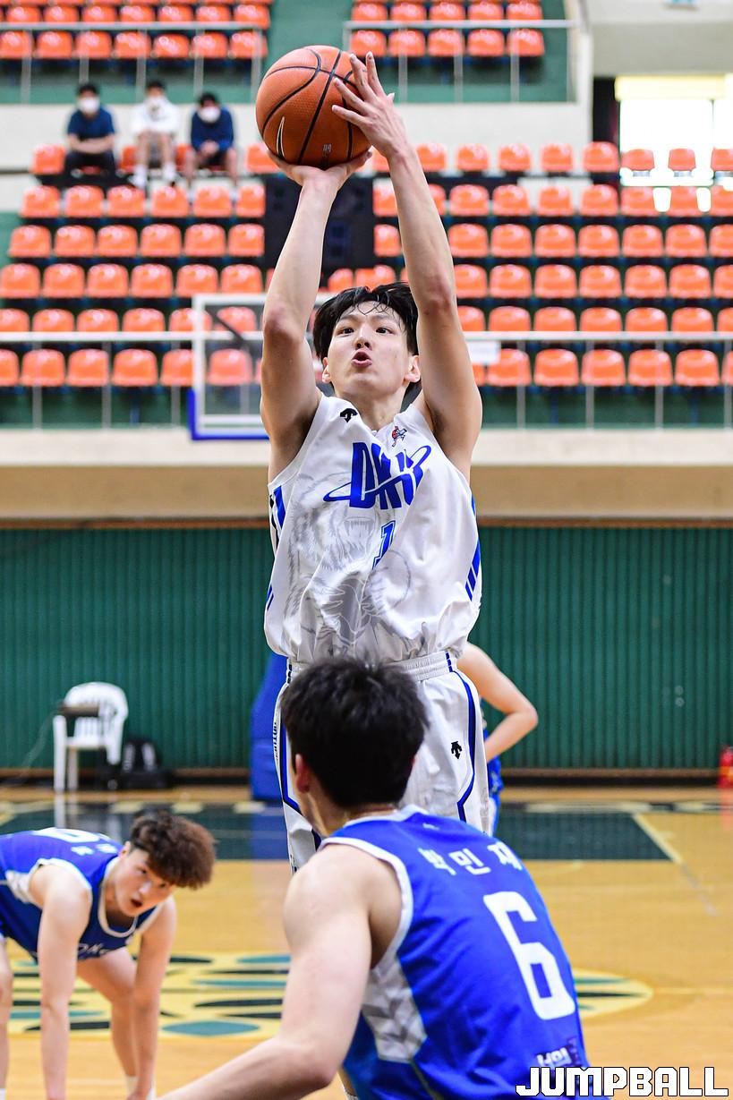 4일 명지대 체육관에서 열린 2022 KUSF 대학농구 U리그 명지대와 단국대의 경기, 단국대 송재환이 점프슛을 시도하고 있다.