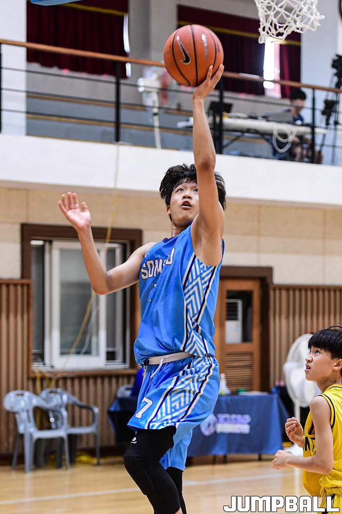 19일 김천금릉초등학교 체육관에서 열린 2021 연맹회장기 전국남녀중고농구 김천대회 송도중과 평원중의 경기, 송도중 방성원이 슛을 시도하고 있다.