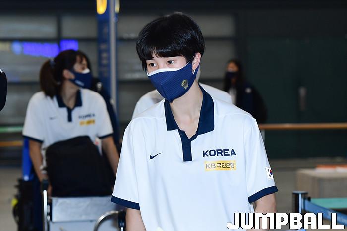 5일 인천국제공항 제1터미널로 2021 아시아컵 여자농구대표팀이 입국했다. 삼성생명 윤예빈이 입국장으로 나오고 있다.