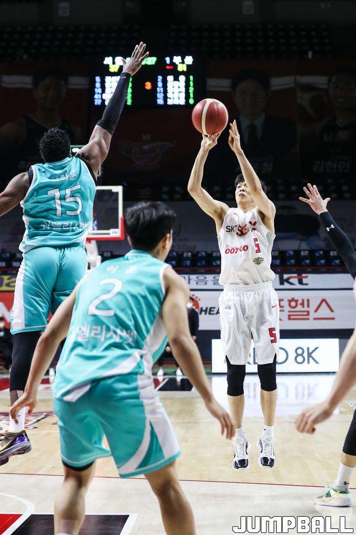 점프볼=윤민호 기자]7일 부산 사직체육관에서 열린 2020-2021 현대모비스 프로농구 부산 KT와 서울 SK의 경기