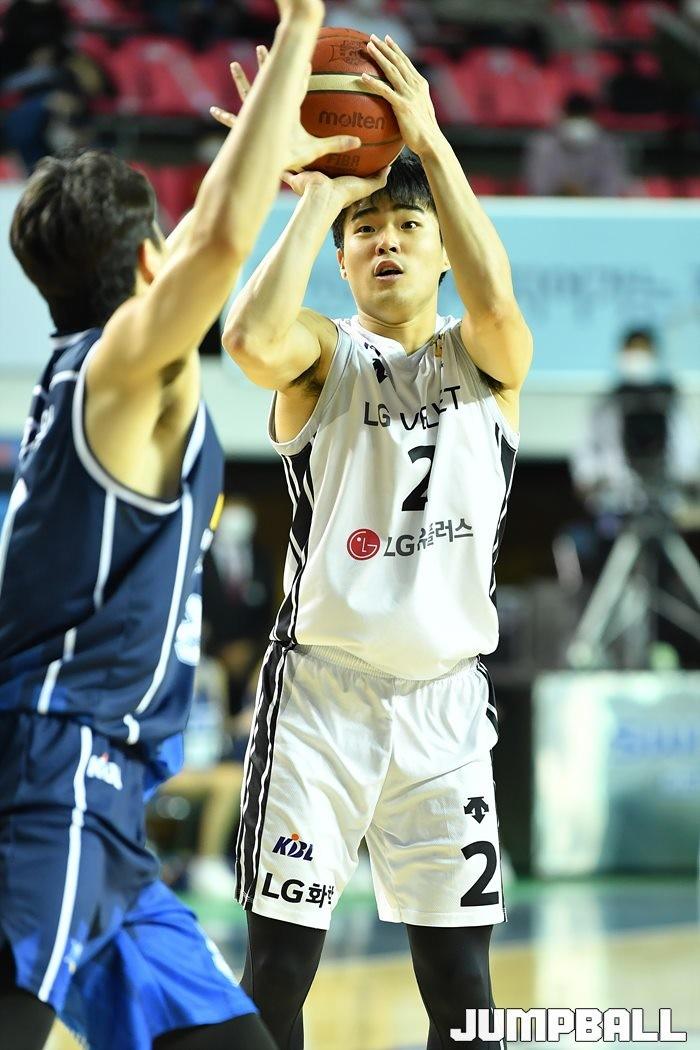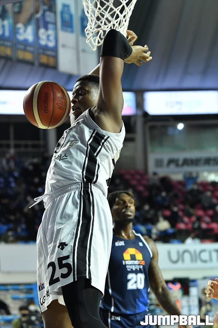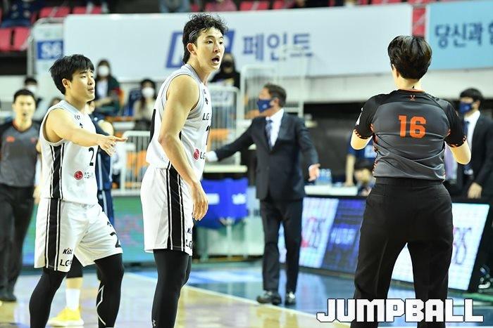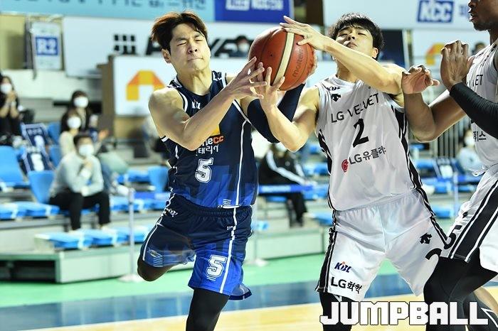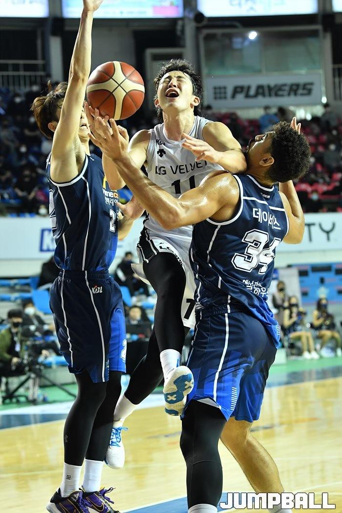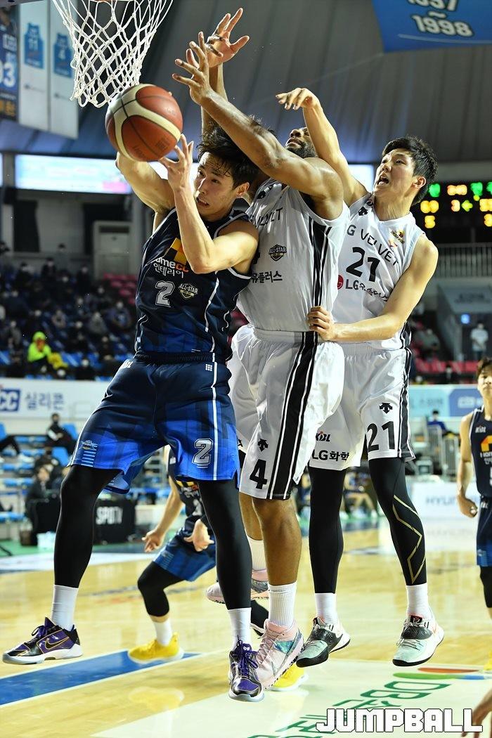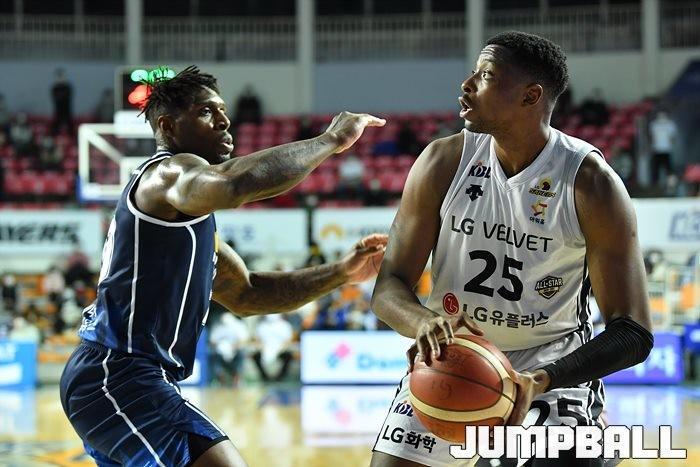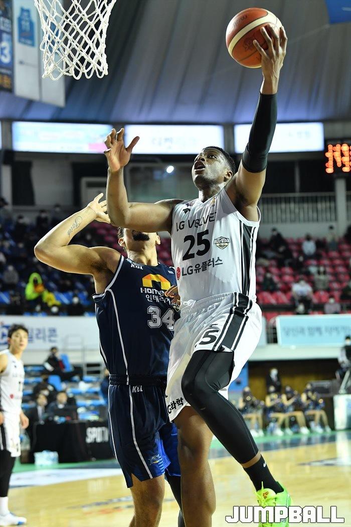[점프볼=전주/유용우 기자] 06일 전주실내체육관에서 열린 2020-2021 현대모비스 프로농구 전주 KCC와 창원 LG의 경기, LG가 97-75로 KCC에 원정 승리했다.