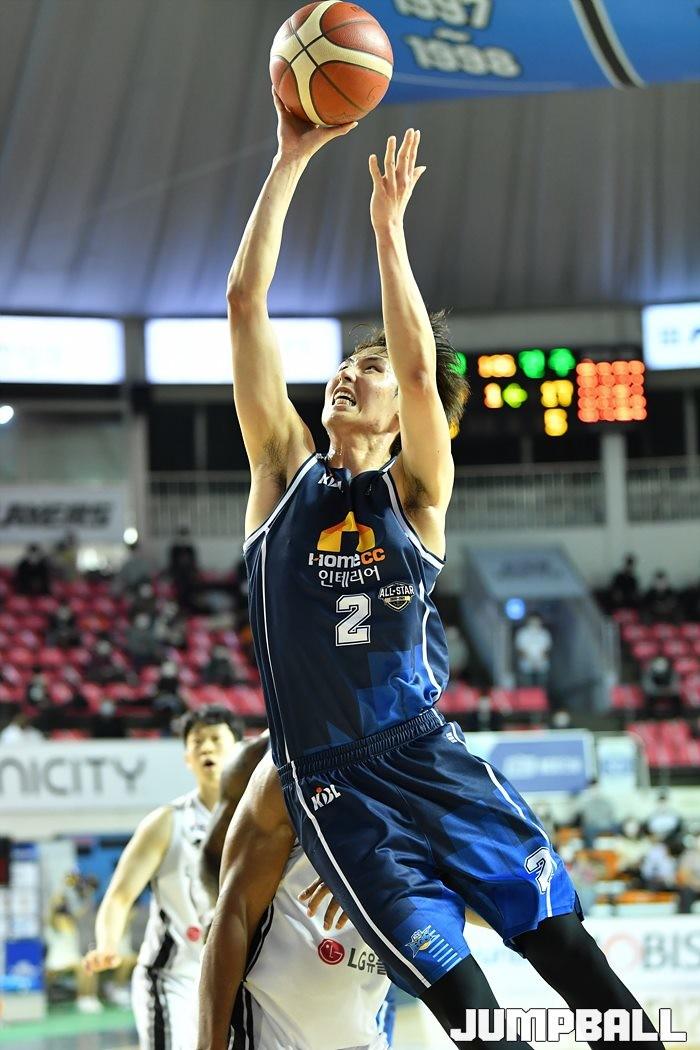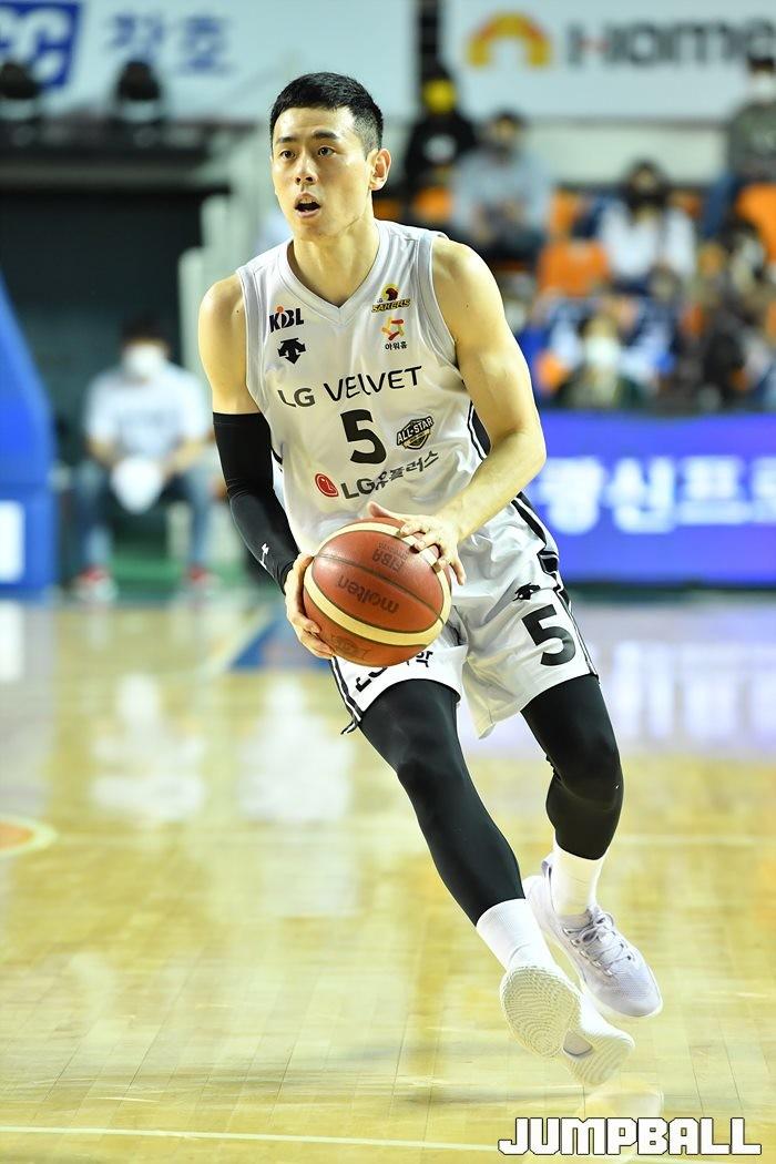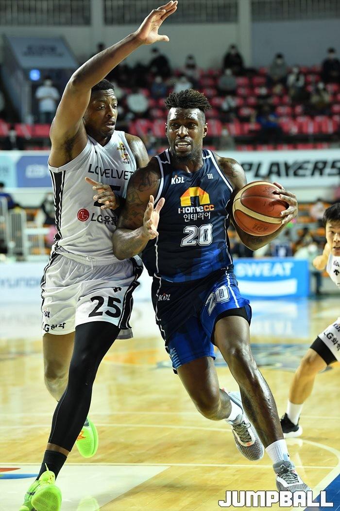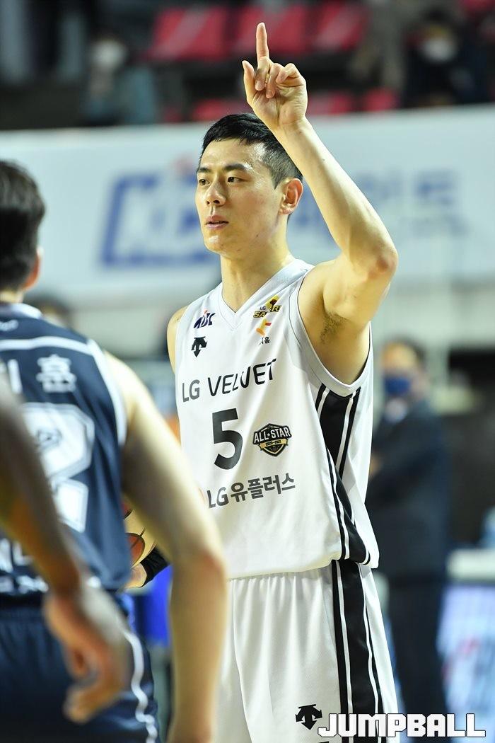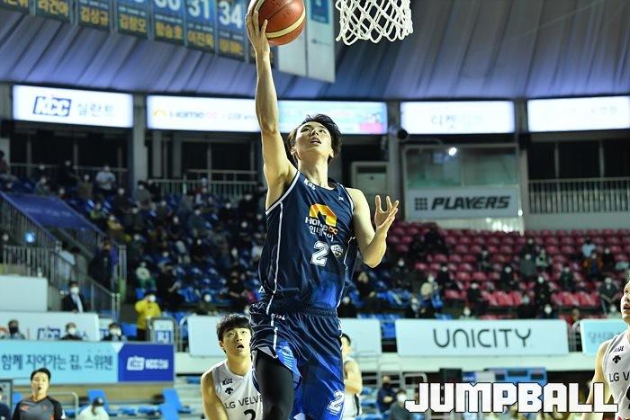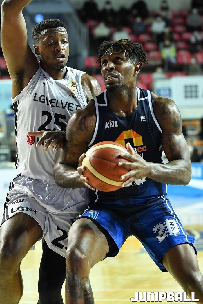 [점프볼=전주/유용우 기자] 06일 전주실내체육관에서 열린 2020-2021 현대모비스 프로농구 전주 KCC와 창원 LG의 경기, LG가 97-75로 KCC에 원정 승리했다.