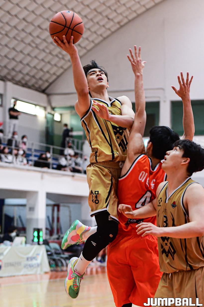 6일 동국대학교 서울캠퍼스 체육관에서 열린 2022 KUSF 대학농구 U리그 동국대와 상명대의 경기, 상명대 김근형이 레이업슛을 시도하고 있다.