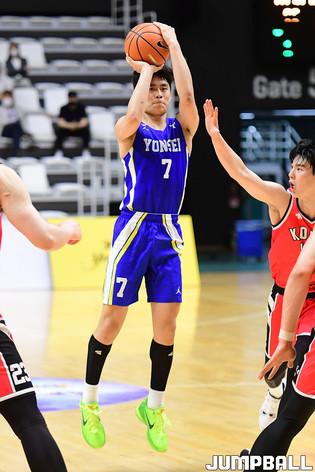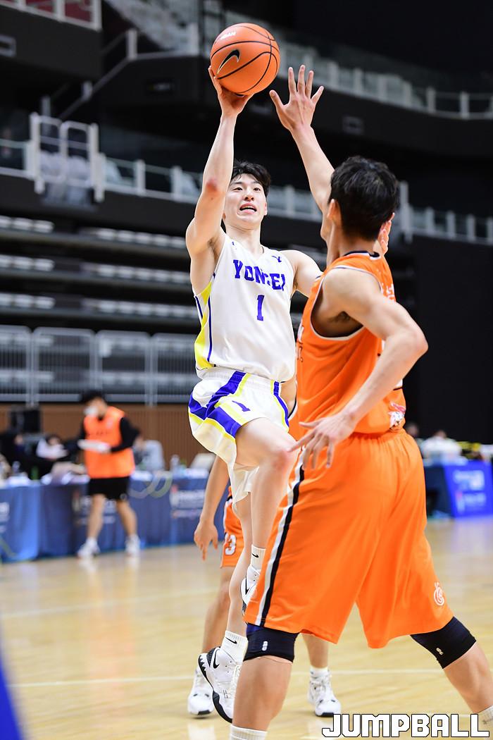 [점프볼=수원/박상혁 기자] 4일 서수원칠보체육관에서 열린 2021 KUSF 대학농구 U리그 연세대와 동국대의 경기,연세대 이정현이 플로터슛을 시도하고 있다.