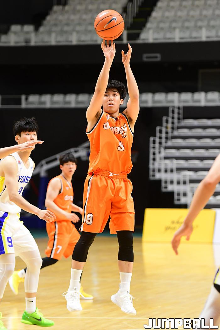 [점프볼=수원/박상혁 기자] 4일 서수원칠보체육관에서 열린 2021 KUSF 대학농구 U리그 연세대와 동국대의 경기, 동국대 김종호가 점프슛을 시도하고 있다.