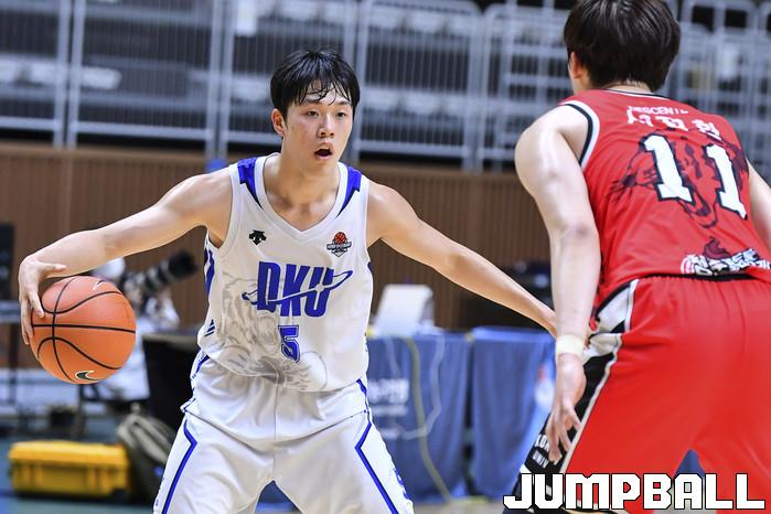 [점프볼=수원/홍기웅 기자] 6일 수원 서수원칠보체육관에서 열린 '2021 KUSF 대학농구 U-리그 3차대회' 단국대와 고려대의 경기. 단국대 이경도가 드리블을 치며 돌파를 시도하고 있다.
