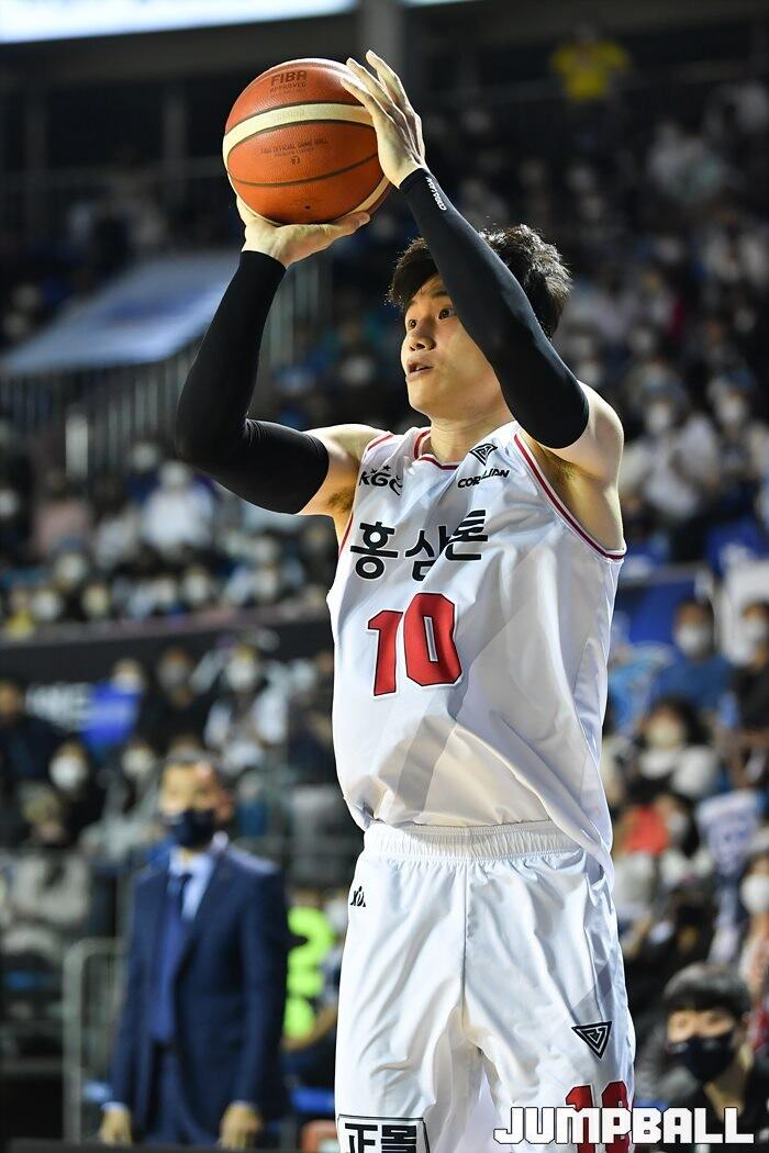 23일 전주실내체육관에서 열린 2022-2023 SKT 에이닷 프로농구 전주 KCC와 안양 KGC인삼공사의 경기, KGC  문성곤이 슛을 시도하고 있다.  [점프볼=전주/유용우 기자]