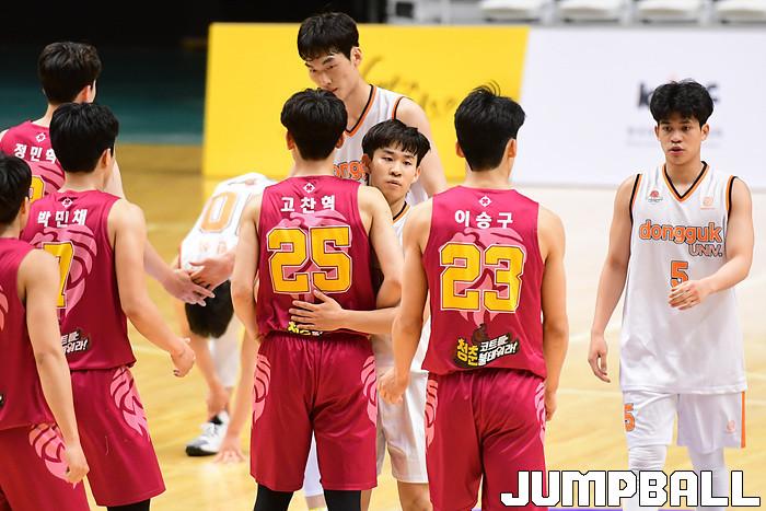 [점프볼=수원/박상혁 기자] 26일 서수원칠보체육관에서 열린 2021 KUSF 대학농구 U리그 동국대와 경희대 경기, 동국대가 경희대에 79-70으로 승리했다.