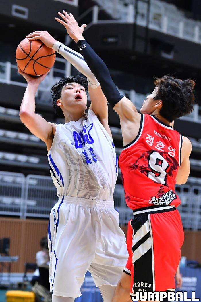 [점프볼=수원/홍기웅 기자] 6일 수원 서수원칠보체육관에서 열린 '2021 KUSF 대학농구 U-리그 3차대회' 단국대와 고려대의 경기에서 고려대가 90-72로 승리를 거뒀다. U리그 3차대회 단국대-고려대 경기화보.