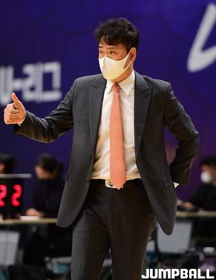 [점프볼=수원/박상혁 기자] 4일 서수원칠보체육관에서 열린 2021 KUSF 대학농구 U리그 연세대와 동국대의 경기, 연세대 은희석 감독이 선수들에게 작전 지시를 내리고 있다.