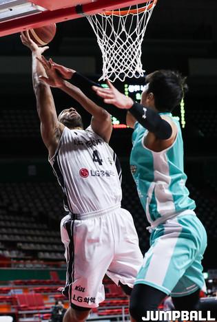 [점프볼=윤민호 기자]24일 사직실내체육관에서 열린 2020-2021 현대모비스 프로농구 부산 KT와 창원 LG의 경기에서 LG 화이트가 덩크 슛을 하고 있다.