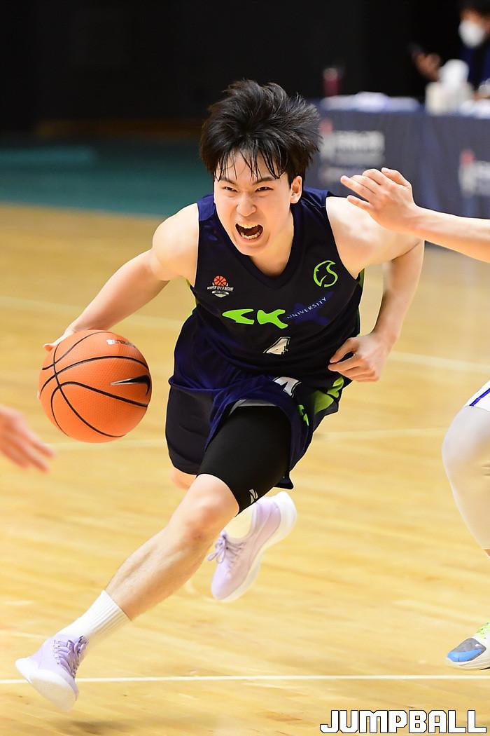[점프볼=수원/박상혁 기자] 27일 서수원칠보체육관에서 열린 2021 KUSF 대학농구 U리그 단국대와 성균관대의 경기, 성균관대 송동훈이 돌파를 시도하고 있다.