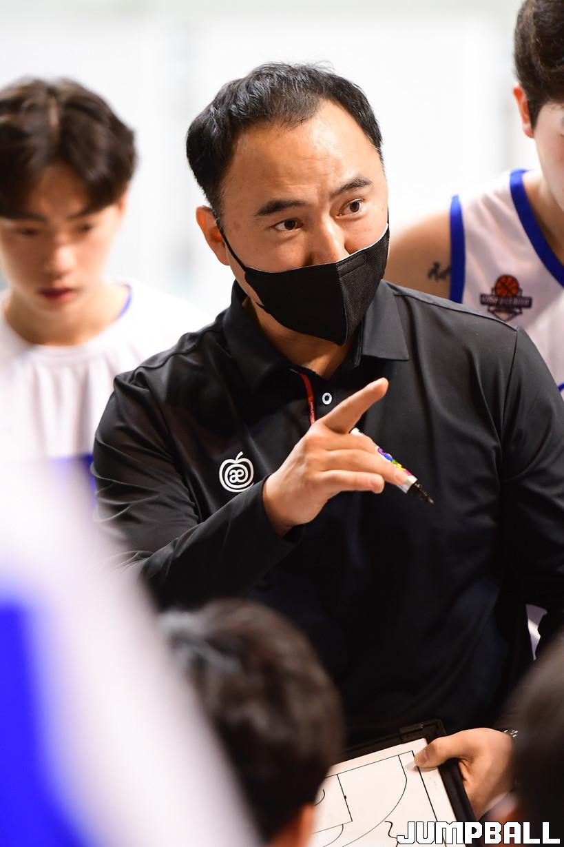 9일 한양대 서울캠퍼스 체육관에서 열린 2022 KUSF 대학농구 U리그 한양대와 명지대의 경기, 명지대 김태진 감독이 선수들에게 지시를 하고 있다.