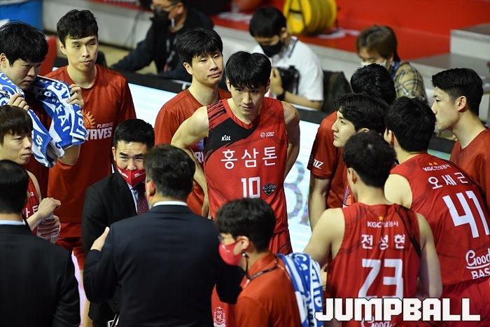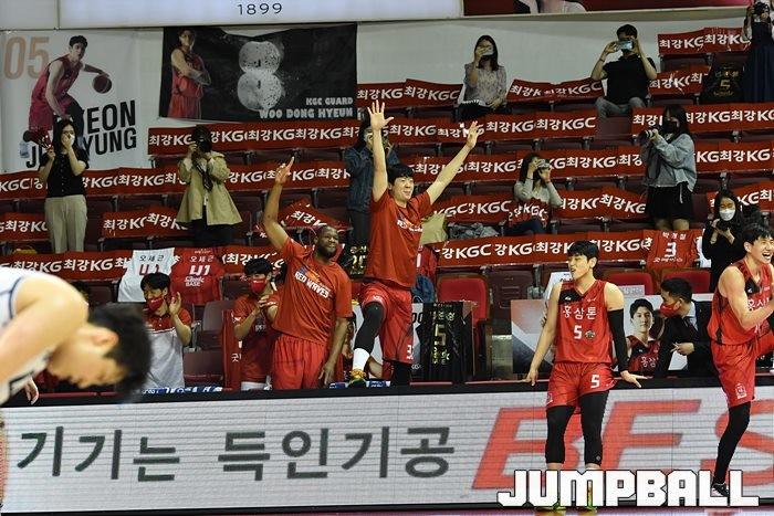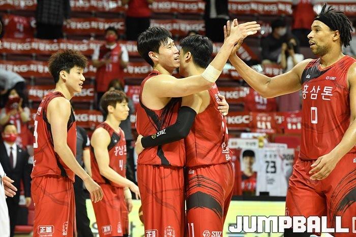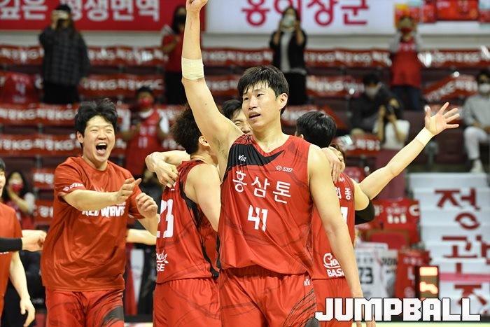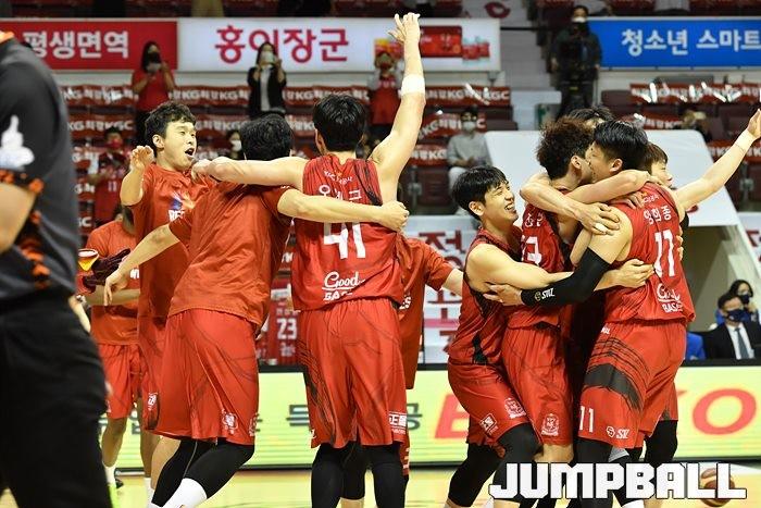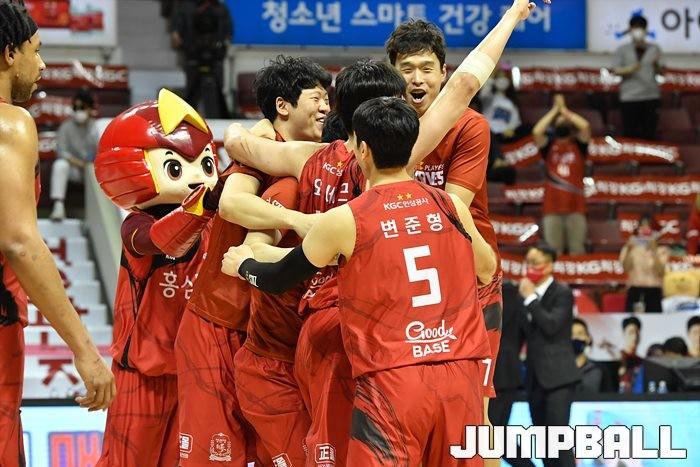 [점프볼=안양/유용우 기자] 안양 KGC인삼공사는 9일 안양실내체육관에서 열린 2020-2021 현대모비스 프로농구 전주 KCC와의 챔피언결정전 4차전에서 84-74로 승리하며 창단 후 세 번째 플레이오프 우승을 차지했다.