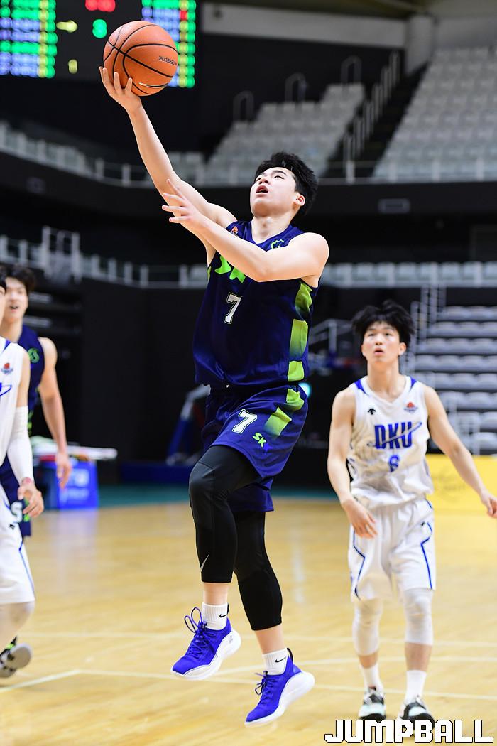 [점프볼=수원/박상혁 기자] 27일 서수원칠보체육관에서 열린 2021 KUSF 대학농구 U리그 단국대와 성균관대의 경기, 성균관대 조은후가 레이업슛을 시도하고 있다.