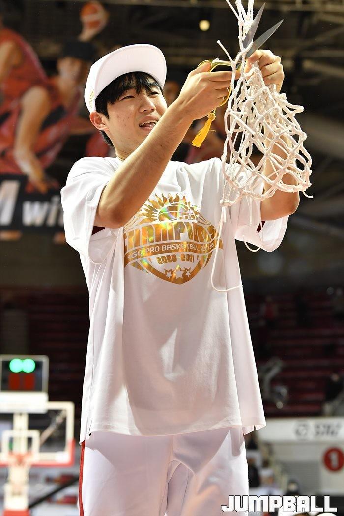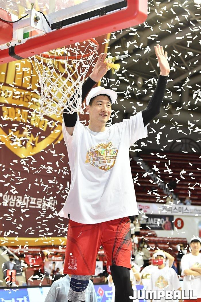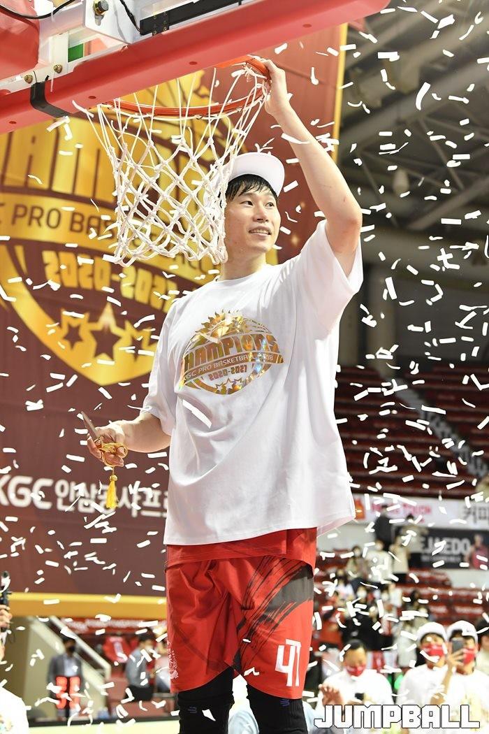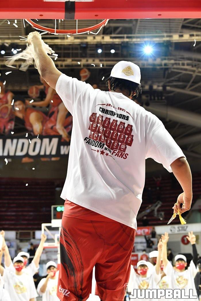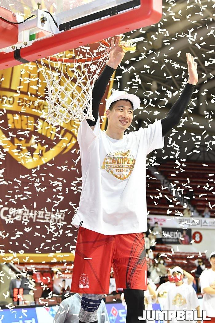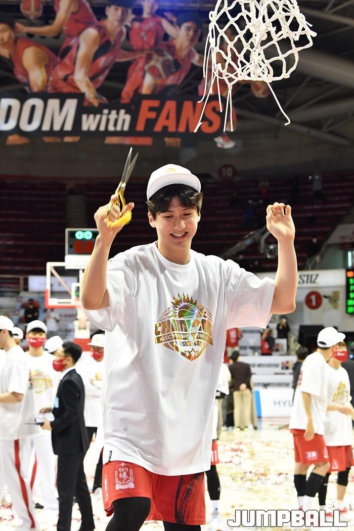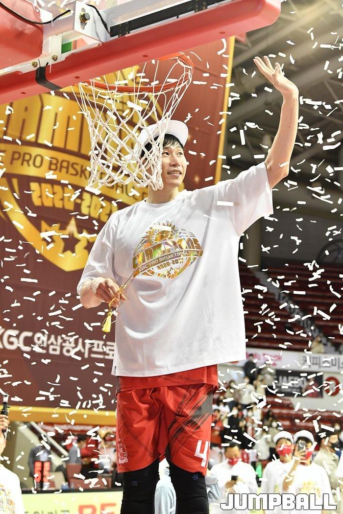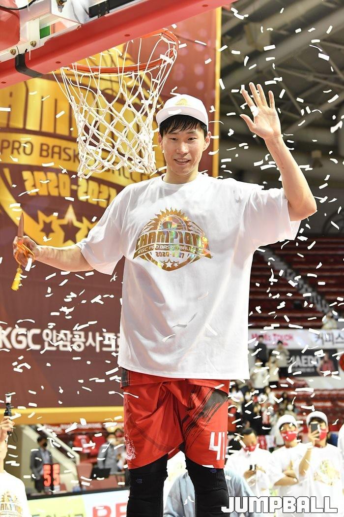 [점프볼=안양/유용우 기자] 안양 KGC인삼공사는 9일 안양실내체육관에서 열린 2020-2021 현대모비스 프로농구 전주 KCC와의 챔피언결정전 4차전에서 84-74로 승리하며 창단 후 세 번째 플레이오프 우승을 차지했다. KGC인삼공사 챔피언결정전 우승 세레머니, 그물망 커팅식 화보