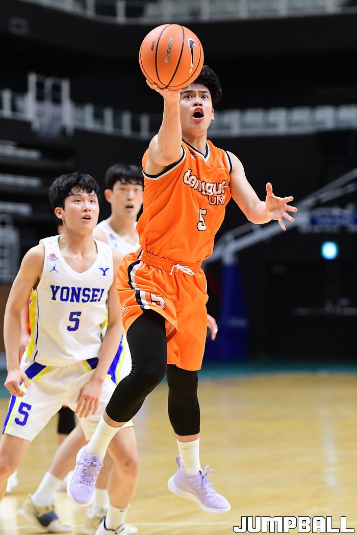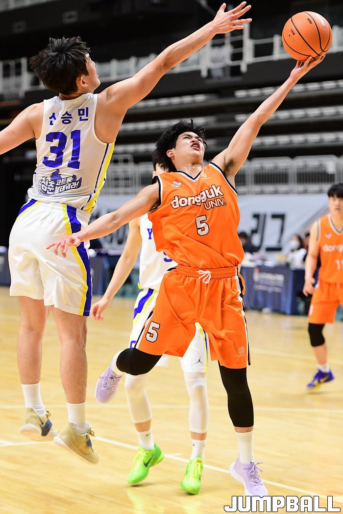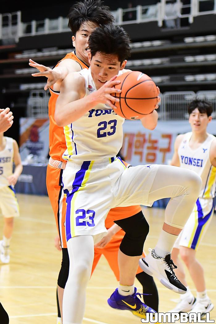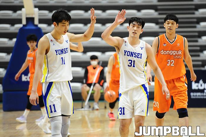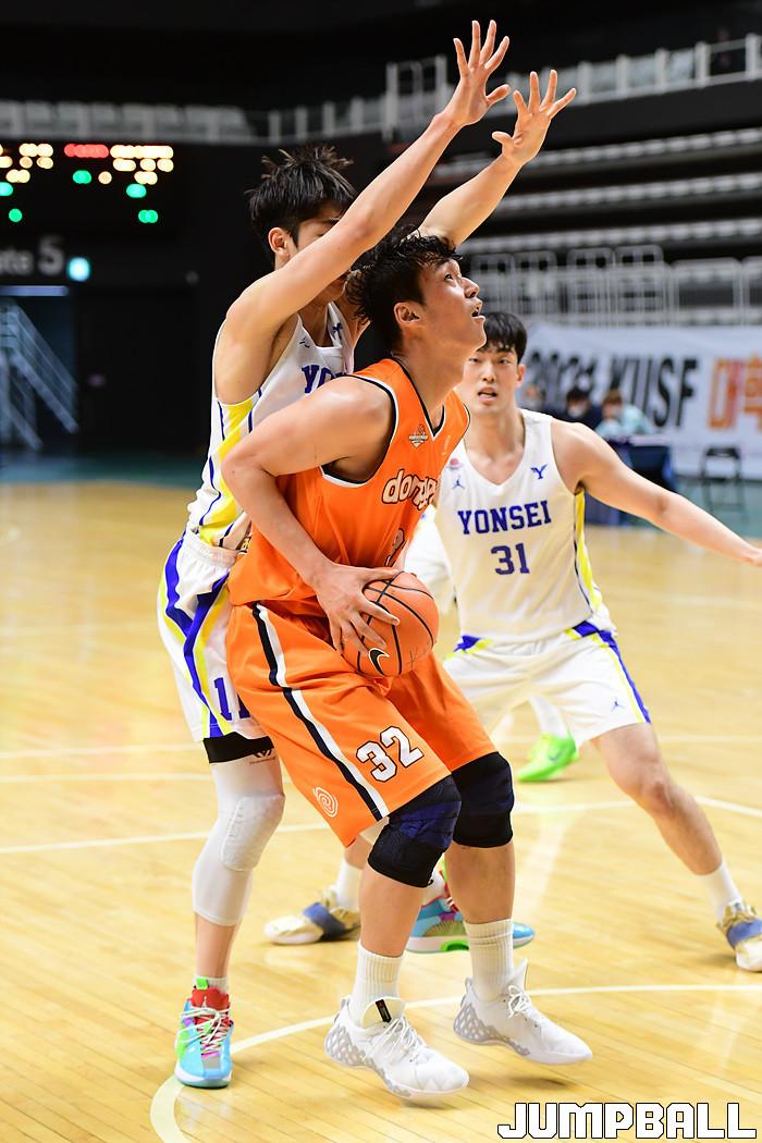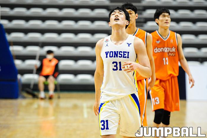 [점프볼=수원/박상혁 기자] 4일 서수원칠보체육관에서 열린 2021 KUSF 대학농구 U리그 연세대와 동국대의 경기, 연세대가 결승에서 동국대에 88-68로 승리했다. 연세대와 동국대 경기 화보