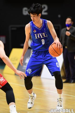[점프볼=수원/박상혁 기자] 25일 서수원칠보체육관에서 열린 2021 KUSF 대학농구 U-리그 한양대와 단국대 경기, 한양대 김민진이 패스를 시도하고 있다.