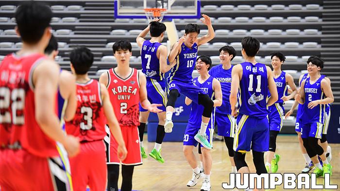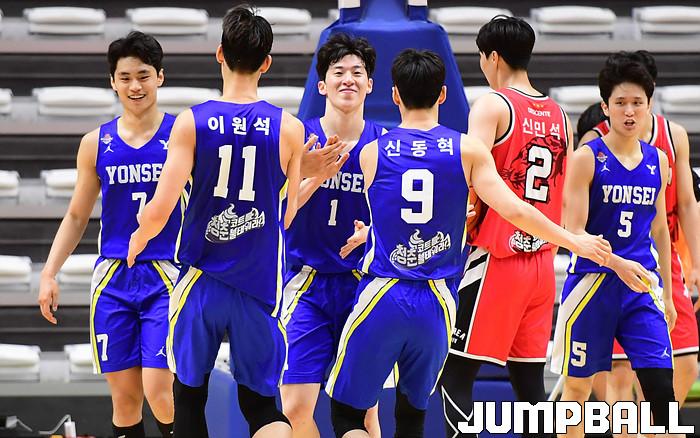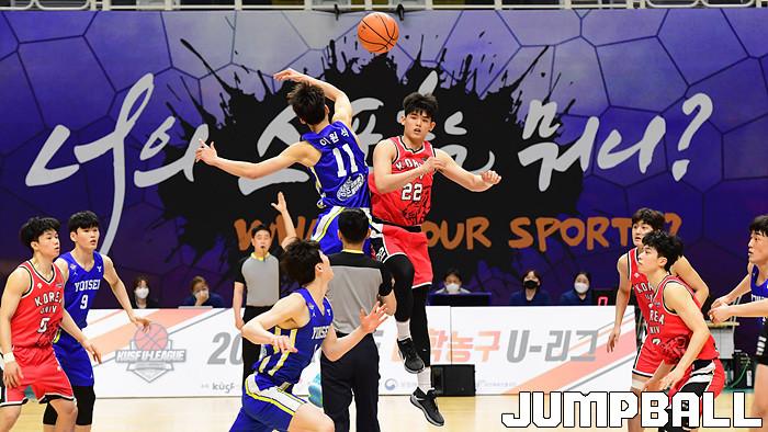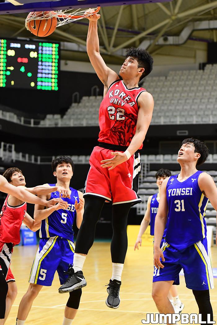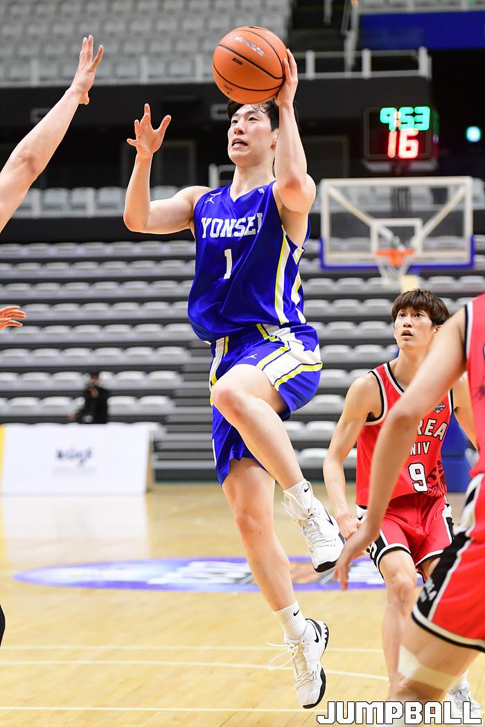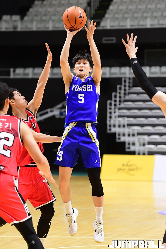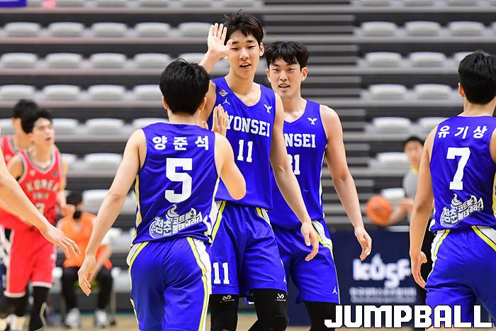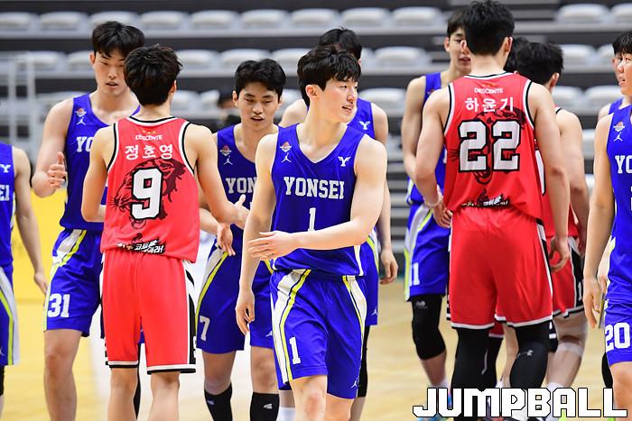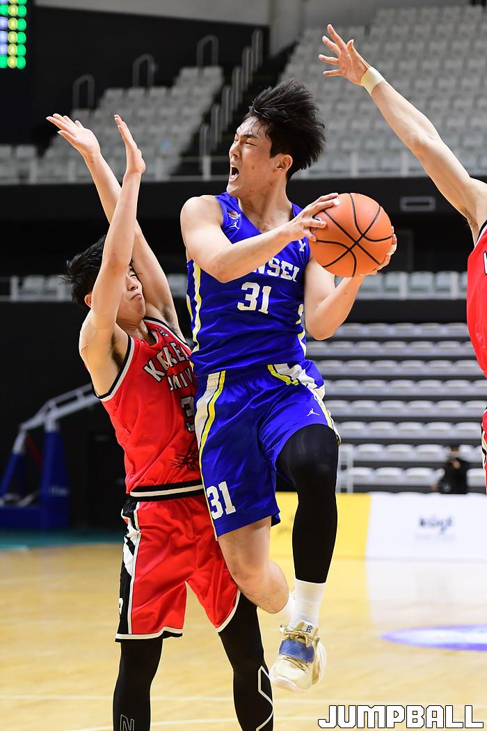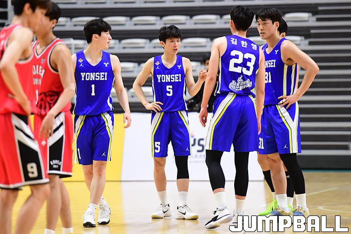 [점프볼=수원/박상혁 기자] 3일 서수원칠보체육관에서 열린 2021 KUSF 대학농구 U리그 연세대와 고려대 4강 플레이오프 경기, 연세대가 고려대에 79-77로 승리했다. 연세대와 고려대 경기 화보