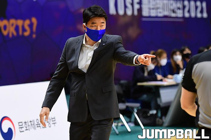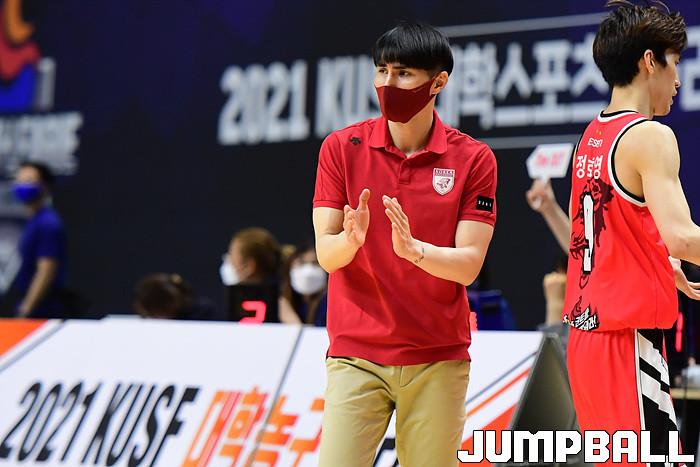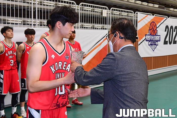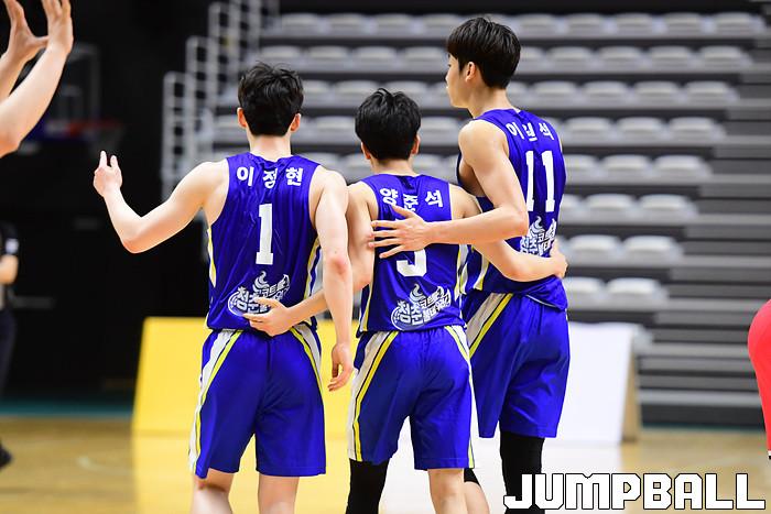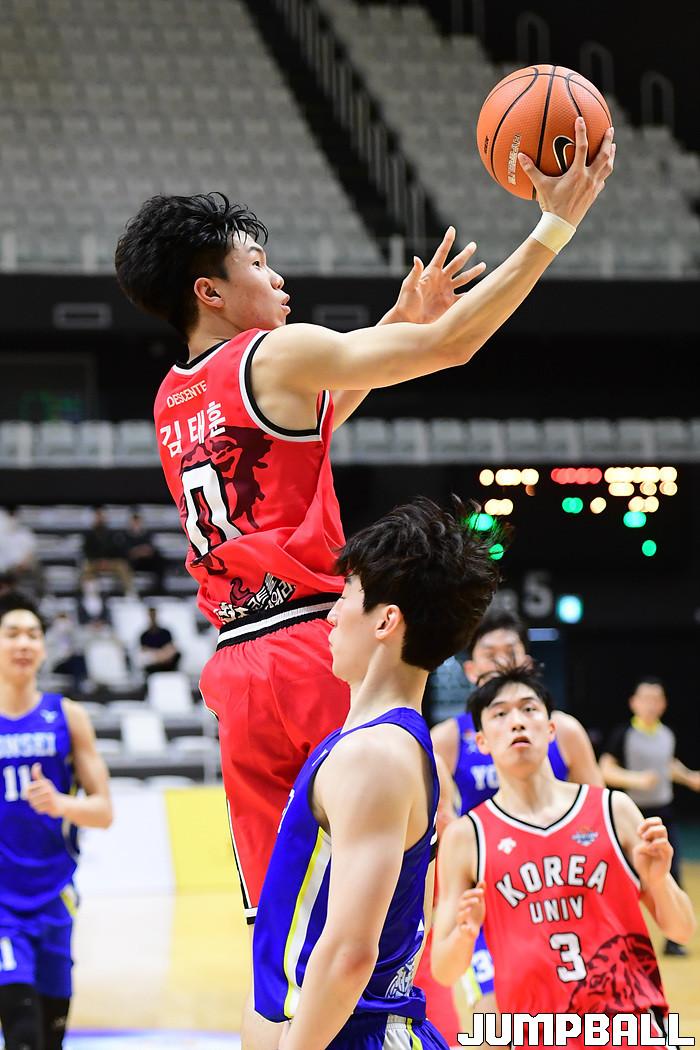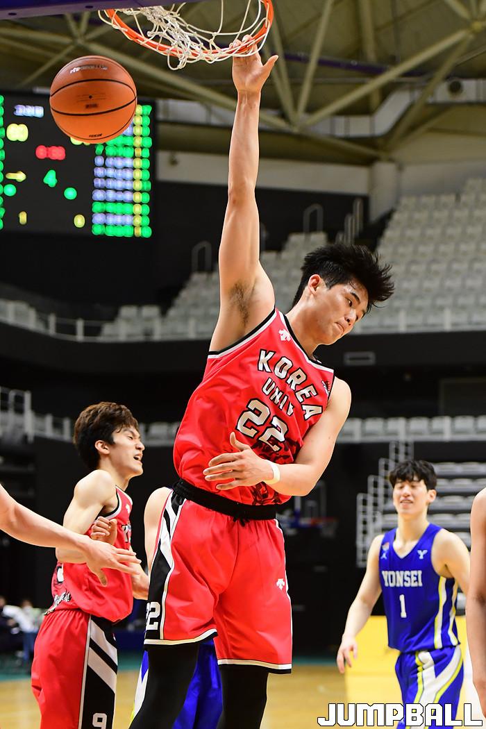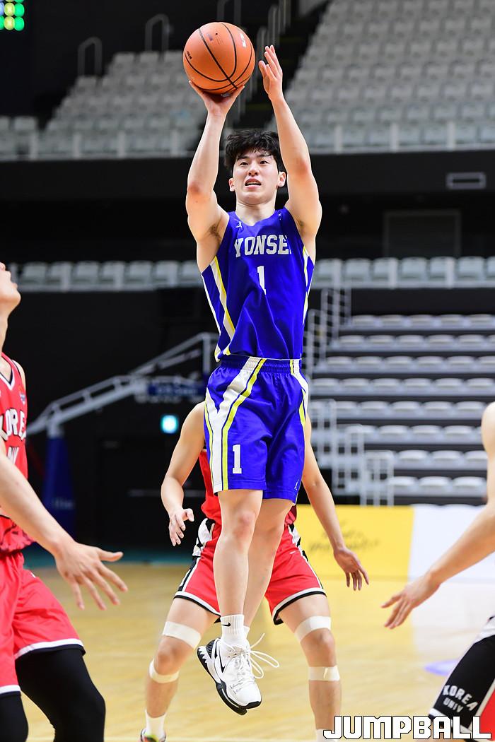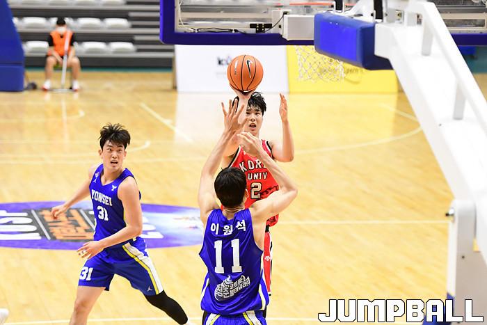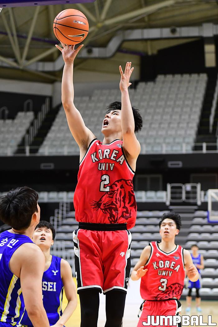 [점프볼=수원/박상혁 기자] 3일 서수원칠보체육관에서 열린 2021 KUSF 대학농구 U리그 연세대와 고려대 4강 플레이오프 경기, 연세대가 고려대에 79-77로 승리했다. 연세대와 고려대 경기 화보
