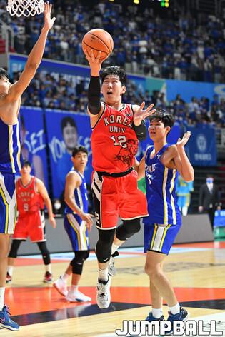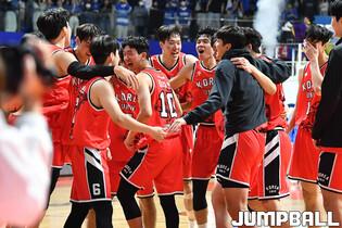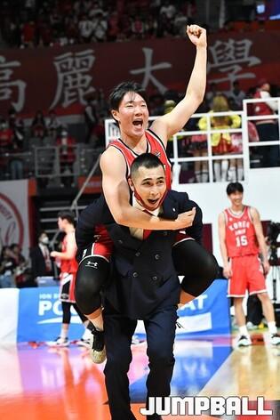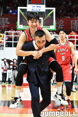 28일 고양실내체육관에서 열린 고려대와 연세대의 2022 정기전, 고려대가 72-64로 연세대에 승리했다. 고려대 주희정 감독이 선수들을 하나 하나 업고 코트 중앙으로 이동하고 있다. [점프볼=고양/유용우 기자]