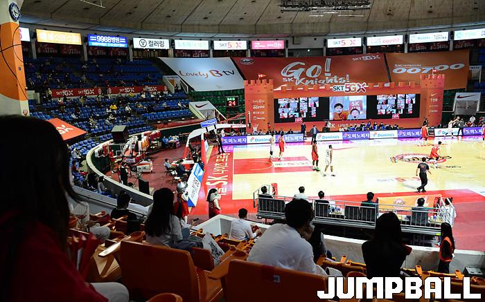 [점프볼=잠실학생/박상혁 기자] 24일 잠실학생체육관에서 열린 2020-2021 현대모비스 프로농구 서울 SK와 안양KGC인삼공사의 경기, SK가 홈에서 이번 시즌 처음으로 관중을 맞이하여 경기를 진행했다.