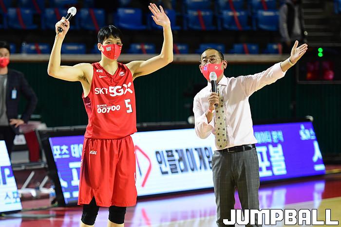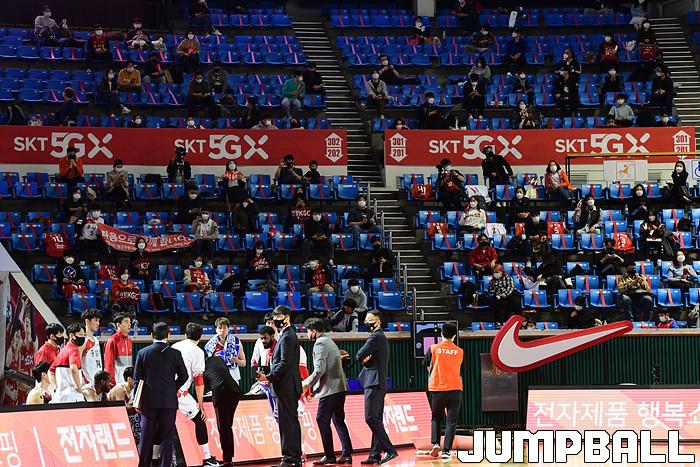 [점프볼=잠실학생/박상혁 기자] 24일 잠실학생체육관에서 열린 2020-2021 현대모비스 프로농구 서울 SK와 안양KGC인삼공사의 경기, SK가 KGC에 83-80으로 승리했다. SK와 KGC 경기 화보