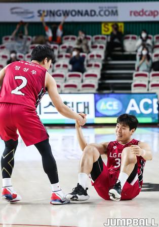 [점프볼=윤민호 기자] 22일 창원실내체육관에서 열린 2020-2021 현대모비스 프로농구 창원 LG와 원주 DB의 경기