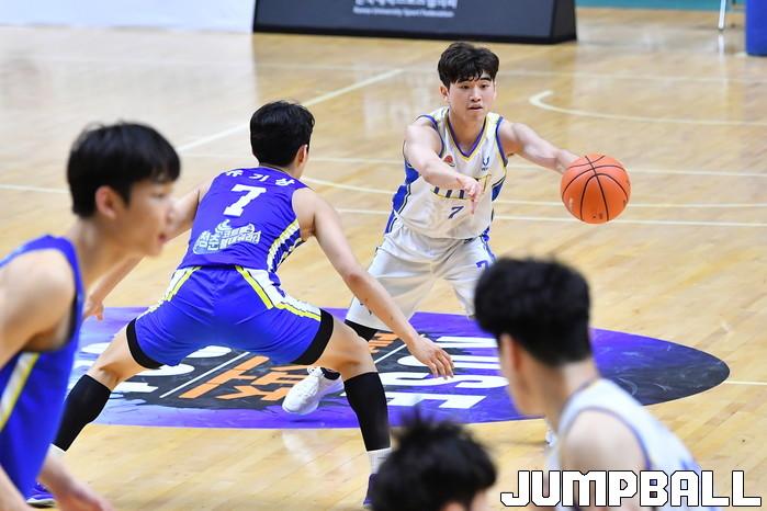[점프볼=수원/홍기웅 기자] 5일 수원 서수원칠보체육관에서 열린 '2021 KUSF 대학농구 U-리그 3차대회' 연세대와 한양대의 경기. 한양대 염재성이 패스를 건네고 있다.