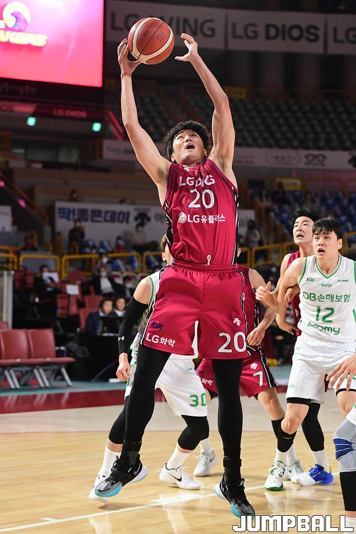 [점프볼=창원/박상혁 기자] 28일 창원실내체육관에서 열린 2020-2021 현대모비스 프로농구 창원 LG와 원주 DB의 경기, LG 김동량이 리바운드를 잡아내고 있다.