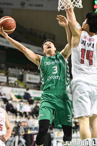 [점프볼=윤민호 기자] 18일 울산 동천체육관에서 열린 2020-2021 현대모비스 프로농구 울산 현대모비스와 안양 KGC의 경기에서 KGC 이재도가 현대모비스 숀롱의 수비를 피해 슛을 하고 있다.