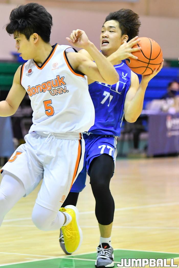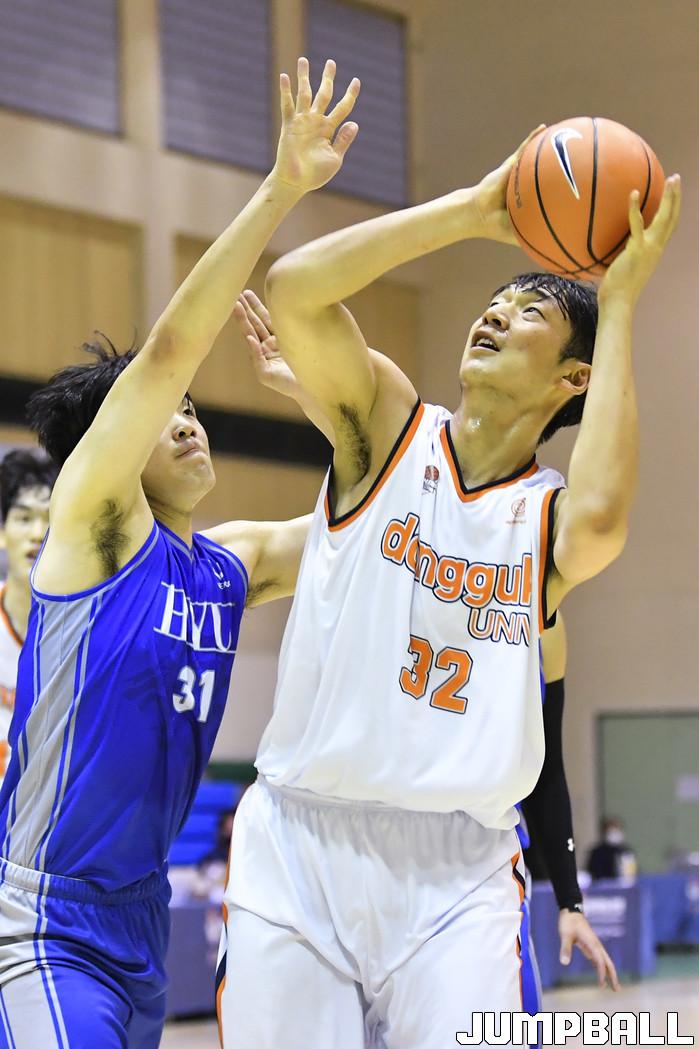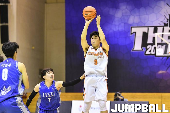 2일 충주 건국대학교 글로컬캠퍼스 건국체육관에서 열린 2021 KUSF 대학농구 U리그 플레이오프 한양대와 동국대의 경기에서 한양대가 80-79로 극적으로 승리를 거뒀다. U리그 플레이오프 한양대-동국대 경기화보.