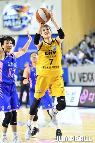 [점프볼=용인/유용우 기자] 15일 용인실내체육관에서 열린 'KB국민은행 Liiv M 2020-2021 여자프로농구' 용인 삼성생명과 청주 KB의 챔피언결정전 5차전, 삼성생명 김보미가 공격에 성공하고 윤예빈과 하이파이브를 하고 있다.