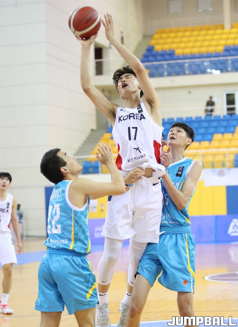 [점프볼=도하/한필상 기자] 신석 감독이 이끄는 한국 U16남자농구 대표팀이 13일 카타르 도하 알 그라파 경기장에서 열린 2021 FIBA U16 아시아 남자농구 대회 예선 첫 경기에서 89-59로 카자흐스탄을 꺾고 첫 승을 올렸다.